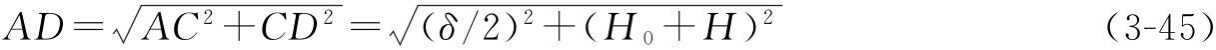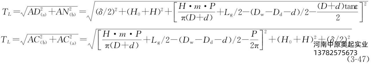 式中参数和本章前面介绍相同,δ、H0、H都可在设计时获得数据,在面对卷筒主视平面,所求长度为AC在图3-55(b)平面的距离: