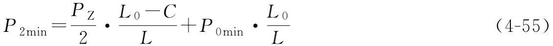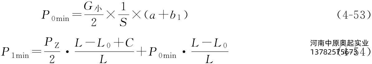 是校核计算车轮的一个经典公式,式中Pmax由式(4-50)和式(4-51)计算可求出,Pmin根据图4-47可推导出下式。